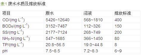 豬場廢水具有有機(jī)物、懸浮物濃度高,富含氮磷且沖擊負(fù)荷大等特點(diǎn),一般先采用厭氧進(jìn)行處理,降解廢水中大部分有機(jī)物,但其出水(沼液)中的有機(jī)物、氮磷濃度仍然很高,需進(jìn)一步處理,且碳氮比較低,處理難度大〔1, 2, 3, 4, 5〕。有必要探索一套技術(shù)及經(jīng)濟(jì)均可行的新型豬場沼液處理工藝并進(jìn)行工程示范,為豬場沼液治理奠定基礎(chǔ)。1 工程概況江西省某規(guī)?;B(yǎng)豬場的廢水排放量為150 m3/d,之前已建有厭氧設(shè)施:升流式固體厭氧反應(yīng)器(USR)及沼氣池,為進(jìn)一步保護(hù)周邊環(huán)境,啟動廢水深度處理工程,使出水滿足《畜禽養(yǎng)殖業(yè)污染物排放標(biāo)準(zhǔn)》(GB 18596—2001)。1.1 廢水的水質(zhì)水量該養(yǎng)豬場主要來源于沖欄水、豬糞尿等,具體水質(zhì)水量及相應(yīng)排放標(biāo)準(zhǔn)見表 1。
